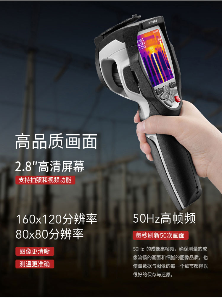 EM DT-980/982/980A/980H/982H/980L-8/982L-8系列智能互聯(lián)型紅外熱像儀,設(shè)計(jì)新穎,體積小巧、是用戶的不錯(cuò)選擇,可用于電力,暖通,消防,石化等領(lǐng)域。