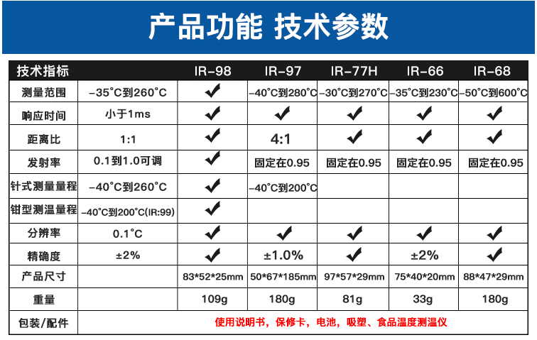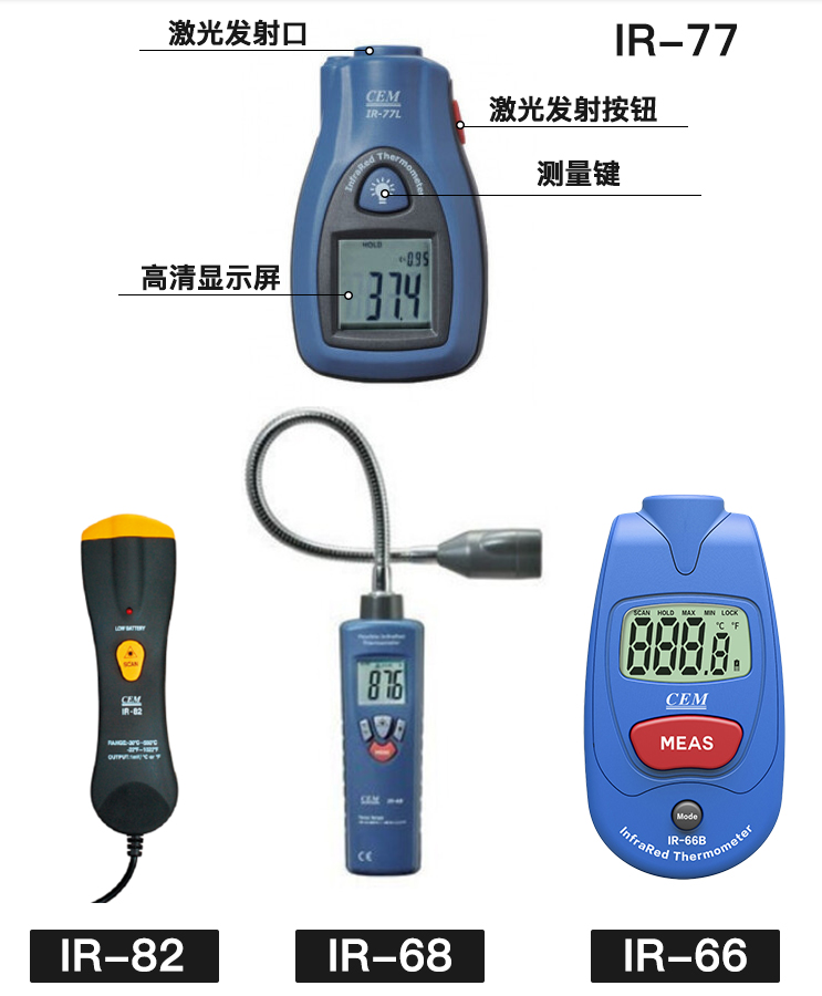 IR-66掌上式紅外測溫儀包括IR-66、IR-66B兩個(gè)型號。 CEM出品的IR-66系列掌上式紅外線測溫儀,符合人體工程學(xué)設(shè)計(jì),其體積比手掌還小,方便攜帶,是您工作上各種設(shè)備檢修、溫度情況了解,以及您日常生活起居的多功能測溫儀佳選擇。 IR-66掌上式紅外線測溫儀特性: 1.*的非接觸式測量 2.獨(dú)特新穎的外觀設(shè)計(jì) 3.自動(dòng)關(guān)機(jī)及自動(dòng)記錄數(shù)據(jù) 4.℃/℉ 轉(zhuǎn)換裝置 5.自動(dòng)量程選擇及大小值記錄 6.小巧的尺寸設(shè)計(jì)使測量方便又便于攜帶 7.大的液晶顯示屏 8.上鎖功能及低電量提示
