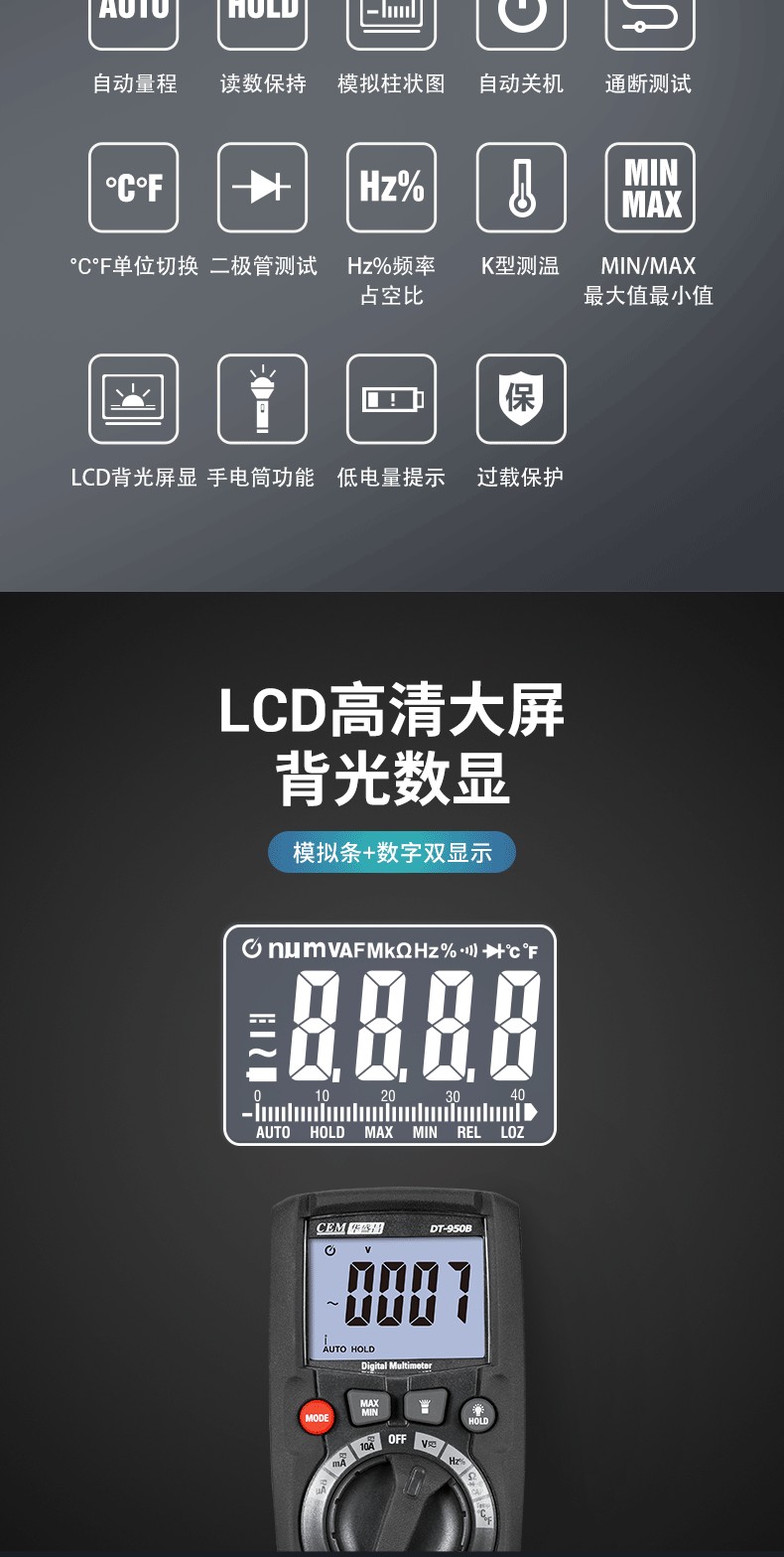 數(shù)字萬(wàn)用表,一種多用途電子測(cè)量?jī)x器,一般包含安培計(jì)、電壓表、歐姆計(jì)等功能,有時(shí)也稱為萬(wàn)用計(jì)、多用計(jì)、多用電表,或三用電表。 數(shù)字萬(wàn)用表適用于基本故障診斷的便攜式裝置,也有放置在工作臺(tái)的裝置,有的分辨率可以達(dá)到七、八位。 數(shù)字多用表(DMM)是在電氣測(cè)量中要用到的電子儀器。它可以有很多特殊功能,但主要功能就是對(duì)電壓、電阻和電流進(jìn)行測(cè)量,數(shù)字多用表,作為現(xiàn)代化的多用途電子測(cè)量?jī)x器,主要用于物理、電氣、電子等測(cè)量領(lǐng)域。